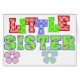 Kleine zusjes t-shirts en cadeautjes met bloemen en het gezegde. Kleine zusje geschreven in een broekje, schattig, kleurrijk, leuk lettertype. Kleine zussen houden van deze t-shirts, knoppen, stickers, canvas tassen en nog veel meer.