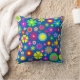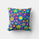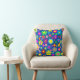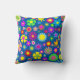 Kleurig bloemontwerp op blauwe achtergrond werpt kussen op