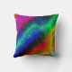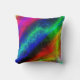 Multicolored abstract ontwerp met levendige neonkleuren en een ruwe textuur. Roze, paarse, watergroene, middernacht blauwe, oranje, gele en metaalgroene kleuren vormen deze kussen. De textuur heeft een glanzend metallisch uiterlijk.