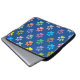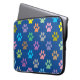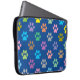 Kleurrijke puppy paw drukt patroon af op blauwe achtergrond laptophoes