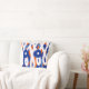 Kleurrijk geabstraheerd kussen met blauwe, witte en oranje kleuren