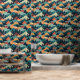 Kleurrijk berglandschap met pijnbomen behang