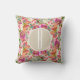 Kleurrijk bloemmotief met monogram in rustieke kra kussen
