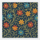 Kleurrijk Geborduurd Bloempatroon op Darkblue Behang