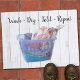 Dit ontwerp bevat een foto van een blauwe mand vol kleurrijke gevouwen kleding op hangers en een wasmiddelflesje en sjabloon tekst met een roestwitte achtergrond. Ideaal voor de wasgoed-/gebruiksruimte. Pas de tekst aan, verwijder de tekst of klik op Aanpassen om een tekenstijl, grootte en kleur te selecteren die u wilt.