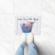 Kleurrijk gevouwen wasgoed op hanen in een blauwe deurmat