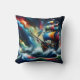 Een piratenschip met felle zeilen vaart door turbulente, kleurrijke wateren onder een dramatische hemel, en toont de kracht van natuur.