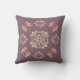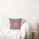 Kussen met pastelroze en groene ornament grafische illustratie op donkere achtergrond.