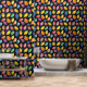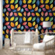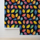 Kleurrijke Bladeren Patroon Krijt Tekeningen Zwart Behang