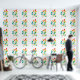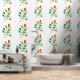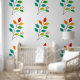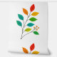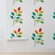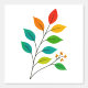 Dit afbeelding toont een eenvoudige, gestileerde tak met bladeren in gedurfde, levendige kleuren. De bladeren zijn geverfd in tinten van rood, sinaasappel, geel, groen en blauwgroen, waardoor de compositie een levendig, vrolijk gevoel geeft dat doet denken aan de herfst en het voorjaar. De tak is delicaat getekend met dunne, zwarte lijnen, en een klein clusterje oranje bessen voegt een speelse toets toe. Het kunstwerk is minimalistisch en modern en benadrukt de schoonheid van de natuur door middel van strakke vormen en levendige kleuren.