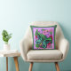 kleurrijke florale gooipijp. Geschilderde bloemen met vlinder, in schoppen van paars en pinken, op een groene achtergrond.