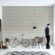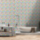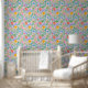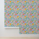 Kleurrijke bloemenretro Schattige grappig meisje p Behang