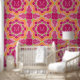 Kleurrijke Bohemienbloem met aangepast monogram Behang