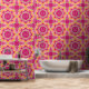 Een gedurfd, grafisch ontwerp met kleurrijke tinten roze en groen - met een leuke kleurenbloem om jouw naam of tekst toe te voegen. Voeg je initialen toe aan deze funky bloemenillustratie. U kunt het monogram wijzigen in één initiaal. Een roze achtergrond met felgroene, oranje en hete roze accenten.