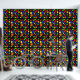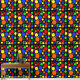 Kleurrijk abstract geometrisch ontwerp, blauwe, rode, gele, groene en roze bellen op zwarte achtergrond