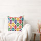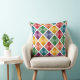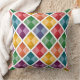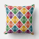 Dit werpkussen heeft een levendig patroon van kleurrijke diamanten, opgebouwd uit kleinere diamanten in verschillende kleuren. De diamanten zijn gerangschikt in een herhalend patroon, waardoor een visueel aantrekkelijk en in het oog springend ontwerp ontstaat. De kleuren van de diamanten zijn rood, oranje, geel en groen, waardoor het kussen een speelse en energieke touch krijgt.