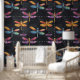 Kleurrijke Dragonfly Patroon Krijt Muur Tekeningen Behang