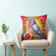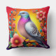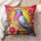 De duif met levendig verenkleed zit sierlijk te midden van een reeks kleurrijke bloemen, tegen een stralende achtergrond, waardoor een levendige en artistieke compositie vol leven en charme ontstaat.
