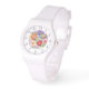 Kleurrijke Faux geborduurde Floral Stylish Womans Watches beschikt over een trendy kleurrijke faux borduurwerk bloemen in roze, paarse, sinaasappel en rood op een pastelgroene achtergrond. Creëer door Evco Studio www.zazzle.com/store/evcostudio