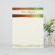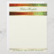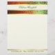 Lang en professioneel uitziend briefhoofd, gemaakt in crème, met grafische weergave van een gradiënt, groen tot oranje gekleurde folie, bovenaan. Een roomkleurige streep, met gouden toonranden over de decoratieve bovenkant van de folie en één dunne gouden toonlijn, over de bodem, Groene tekst, over de bovenkant en de bodem, is klaar om voor jezelf of uw zaken te personaliseren.