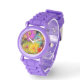 Een leuk kleurrijk horlogegezicht versierd met gele, paarse, roze, oranje, rode, blauwgroen en groene plat met bijpassende confetti. De gele getallen zijn een sjabloon die je kunt verwijderen. Kies uw band "Stijl" en "Kleur" onder Opties.