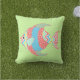 Voeg een beetje zomerkleur toe aan uw buitenleefruimte met dit heldere groene schimmelbestendige kussen, met een leuke veelkleurige en gepatenteerde vis. Pas en voeg wat tekst toe om dit uw te maken.