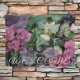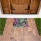 Decoratieve, welkome deurmat met een botanische foto afbeelding van kleurrijke Heuchera plant bladeren en ander blad. Een mooi, bloemig ontwerp! Gebruik binnenshuis of in overdekte toegangsgebieden.