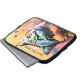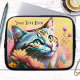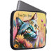 Laptophoes met een kleurrijk schilderij van een schattig kat met bloemen. De tekst is optioneel.