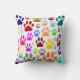 Afbeeldingen hondenpootafdrukken overal. Kleurrijke cartoon stijl ontwerp. Aangepaste gooi kussens. Cadeau idee voor mensen van alle leeftijden die van honden houden.