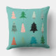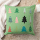 Kleurrijke kerstbomen werpen kussen. Deze kussen zijn groene achtergrond aan de eerste kant en de andere kant is blauw. Mooi tweetalige kerstpatroon voor familie.