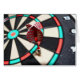Foto van een kleurrijk dartboard met daarin een dart.