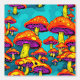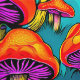 Kleurrijke psychedelische paddenstoelen in blauw, sinaasappel, paarse en geel stok en schil behang.