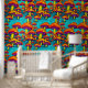 Kleurrijke levendige Retro Trippy paddenstoelen Behang