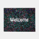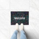 Kleurrijke Muzieknoten deurmat. Turquoise, paars, lavender, blauw, groen en roze muzikale noten in een chaotische band tegen zwart. In de tekst staat "welkom", maar u kunt het veranderen in alles wat u wilt of dat u het zo laat laat. Een geweldige ingang naar een muzikaal huishouden of een geweldig cadeau voor je favoriete muzikant of muziekliefhebber. #muziek #homedecor #doormat