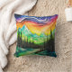 Dit unieke kussen heeft een abstracte landschapsillustratie met het verschijnsel noorderlicht. Dit comfortabele en vrij unieke kussen zou een prachtig cadeau zijn.