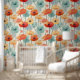 Kleurrijke Poppies Modern Floral Pattern Wallpaper heeft eigentijdse maanbloemen in geel, sinaasappel, groen, blauw en rood. Perfect voor thuis, kantoor en feestdecor. Creëer door Evco Studio www.zazzle.com/store/evcostudio
