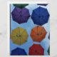 Een dak van kleurrijke paraplu's onder de heldere hemel