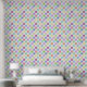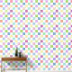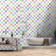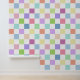 Dit behang is voorzien van een dambordpatroon in zachte pastels van roze, groen, blauw, perzik, sinaasappel en lavendel met wit.