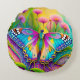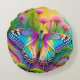 Kleurrijke psychedelische vlinder en wilde bloemen rond kussen