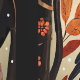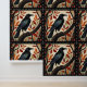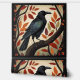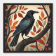 Een schattige en kleurrijke volkskunst vertolking van een raaf (Corvus corax) neergestreken in een boom, de kleuren van de bladeren roepen een gevoel van de herfst. In de Noordse mythologie shows de IJslandse saga's en de IJslandse folklore meestal de raaf als een wijze, alwetende boodschapper en vaak een profetievogel, beschermer en helper. Ze worden ook geassocieerd met strijd en dood. Hun aanwezigheid is vaak gekoppeld aan Odin's aanwezigheid en zijn rol als een god van oorlog, poëzie en wijsheid.