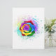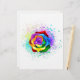 Grote, bloeiende roos met regenboogkleurige bloembladen op witte achtergrond, beschilderd met spetters van kleurrijke, heldere verf. 3d