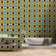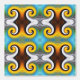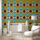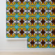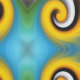Modern grafisch ontwerp gemaakt van papegaaienveren in een delicate, zwevende look. Mooie kleuren in blauw, wit, geel en bruin - Cool retro design!