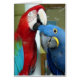 Foto van een vriendelijke Scarlet (rood) en Hyacinth (blauw) ara's van celeste@khoncepts.com
