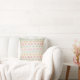 sneeuwvlokken van groen, roze, rood, goud en aqua op een witte achtergrond, een prachtige vakantieworp kussen om elke ruimte feestelijker te maken!