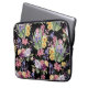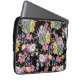 Kleurrijke tuinbloemen op zwarte achtergrond laptop sleeve