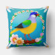 Kleurrijke vogel op tak omlijst met bloemen kussen