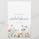 Dit ontwerp bevat een rand van levendige wilde bloemen in tinten rood, geel, groen, turkoois en blauw. Ideaal voor een informele bruidsborrel in de zomer.