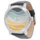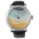 Abstracte retro stijl zomerse illustratie van kleurrijke (geel, blauw, sinaasappel, marineblauw, mosterd, turquoise) golven decoratie op witte achtergrond