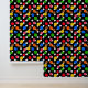 Multi Gekleurde Kleurrijke Zwarte achtergrond polka stippen Patroon Ontwerp Muur Wallpaper