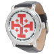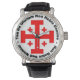 Klassieke Tempeliers ontwerp. Ruwweg vertaald "Niet aan ons, Heer, niet aan ons, maar aan Jouw naam, geef glorie."